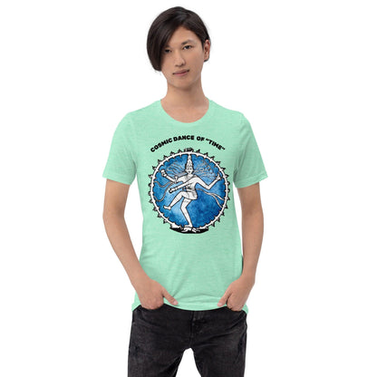 Elevate your style and spiritual connection with our "Cosmic Dance of Time" t-shirt. This stunning piece features a mesmerizing depiction of Lord Shiva's Nataraja, embodying the divine rhythm of creation, preservation, and destruction. This Hindu t-shirt isn't just Hinduism clothing it's a testament to your appreciation for profound art and ancient wisdom.Why This T-Shirt is a Must-Have:Exquisite Design: The breathtaking illustration of Shiva Nataraja captures the essence of cosmic energy and timeless beauty. This unique design is bound to turn heads and spark conversations.Unmatched Comfort: Made from the finest 100% combed and ring-spun cotton, these spiritual shirts offers unparalleled softness and comfort. Perfect for all-day wear, you'll feel as good as you look.Versatile and Stylish: Whether you're heading to a yoga class, spiritual retreat, casual outing, or just relaxing at home, this Limited edition t-shirt effortlessly complements any outfit. Pair it with jeans, shorts, or leggings for a look that's both chic and meaningful.Eco-Conscious Production: Each t-shirt is made to order, helping to reduce waste and promote sustainable practices. By choosing this product, you’re supporting a more environmentally friendly approach to fashion.Product Highlights:• Material: Premium 100% combed and ring-spun cotton (heather colors contain polyester)• Fabric weight: 4.2 oz/yd² (142 g/m²) • Side-seamed construction• Shoulder-to-shoulder tapingCare Instructions: Easy care with machine wash cold, tumble dry lowIdeal Gift for someone who loves Shiva, Hindus, Indologist, and people interested in oriental or eastern philosophy.Act Now – Limited Edition:Don’t miss your chance to own this extraordinary God Shiva t shirt. Feel the divine energy and make a bold statement wherever you go. Click "Add to Cart" now and let the cosmic dance of time inspire your journey!This product is made especially for you as soon as you place an order, which is why it takes us a bit longer to deliver it to you. Making products on demand instead of in bulk helps reduce overproduction, so thank you for making thoughtful purchasing decisions!